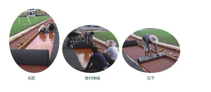 三.預制型塑膠跑道鋪設過程: