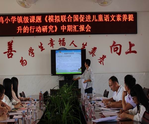 11月12日,鳳鳴小學(xué)舉行鎮(zhèn)級(jí)課題《模擬聯(lián)合國(guó)促進(jìn)兒童語(yǔ)文素養(yǎng)提升的行動(dòng)研究》中期匯報(bào)會(huì),東鳳鎮(zhèn)課題專家組的林紅主任、陳名勝主任、何中建主任、陳簿新主任,鳳鳴小學(xué)吳桂鳳副主任以及課題組全體成員參加本次會(huì)議。