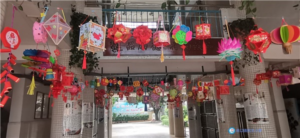 接著,學(xué)校對(duì)各班上交的燈籠進(jìn)行精心評(píng)選,共評(píng)選出兩百多個(gè)設(shè)計(jì)精巧、色彩繽紛、獨(dú)具匠心的燈籠作品。一串串富有傳統(tǒng)文化氣息的燈籠于學(xué)校中庭展示,課間引來師生們的觀賞。