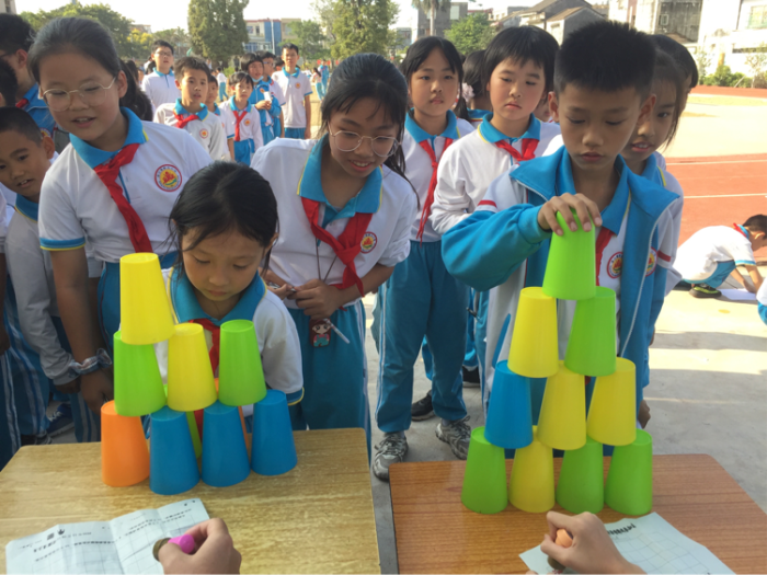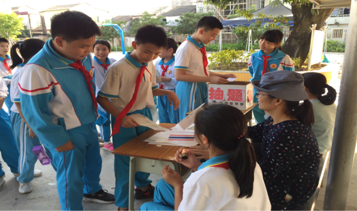 校園嘉年華活動(dòng)通過寓教于樂的游園形式開展,這些闖關(guān)的游戲里會(huì)涉及到語文、數(shù)學(xué)、英語、綜合等各學(xué)科豐富的知識(shí)。各科組老師們精心布置了豐富的充滿學(xué)科味道的活動(dòng)攤位:趣味語文、玩轉(zhuǎn)魔方、數(shù)學(xué)華容道、電路連接等,同學(xué)們?cè)诨顒?dòng)中學(xué)知識(shí)、用知識(shí)、玩知識(shí),不亦樂乎。你看,有的孩子自信滿滿地從抽題箱中抽了一道題目,迅速準(zhǔn)確地報(bào)出正確答案;有的孩子三四下就把混亂的魔方復(fù)原好……同學(xué)們踴躍參與,收獲滿滿。