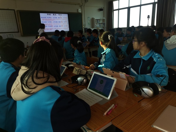 啟動(dòng)儀式由兩部分組成,第一部分由語文科組孫欣欣老師展示智慧課堂吟誦課。在展示課上,孫欣欣老師緊扣住吟誦重難點(diǎn),環(huán)節(jié)設(shè)計(jì)巧妙,學(xué)生勇敢嘗試,一句句充滿古韻的吟誦充分展示了中華傳統(tǒng)文化的博大精深。課堂上,孫老師利用教學(xué)平板展示吟誦的技巧,學(xué)生利用教學(xué)平板實(shí)時(shí)上傳吟誦音頻,現(xiàn)代化的教學(xué)設(shè)備和中華傳統(tǒng)文化的融合讓老師們充分感受到信息技術(shù)和學(xué)科融合的魅力。