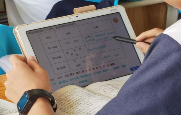 本次活動由初一年級何凱賢老師主講莫頓·亨特的《走一步,再走一步》。何凱賢老師以自主檢測,檢查預習、快速默讀,圈點勾畫、自主默讀,梳理情節(jié)、自主精讀,把握心理、自主探究,領悟主旨為教學思路,熟練地運用了讀書郎智慧課堂設備進行授課。課堂上學生人手一部讀書郎平板電腦,登錄進入何老師的課堂,平板電腦的畫面便與講臺上一體機的畫面同步,坐后排的同學也能通過平板把PPT的內容看得清清楚楚。