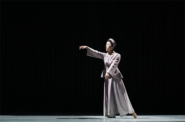 這其中還有導演本身的女性視角,比如說,杜甫的妻子楊氏史書上幾乎沒有什么記載,但是在這個舞劇中,導演給了她相當?shù)目臻g,從新婚別離,到中年重聚,讓她去展示普通人的情感,‘杜妻’這個角色一輩子都在等待,在杜甫出去求官到棄官回鄉(xiāng)的過程中,他只回來過一次,那一次是兒子死了。所以在舞段中,杜妻流著淚哭打著質(zhì)問他,你到底在干什么?你也可以從她的身上感受到杜甫的心中有大家沒小家?!?/p>