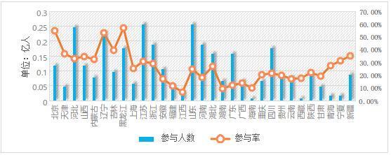 各省、市、自治區(qū)冰雪運(yùn)動(dòng)參與人數(shù)及參與率