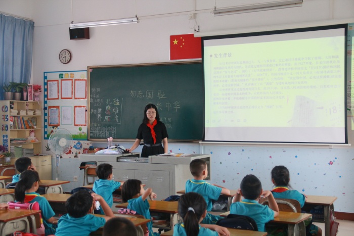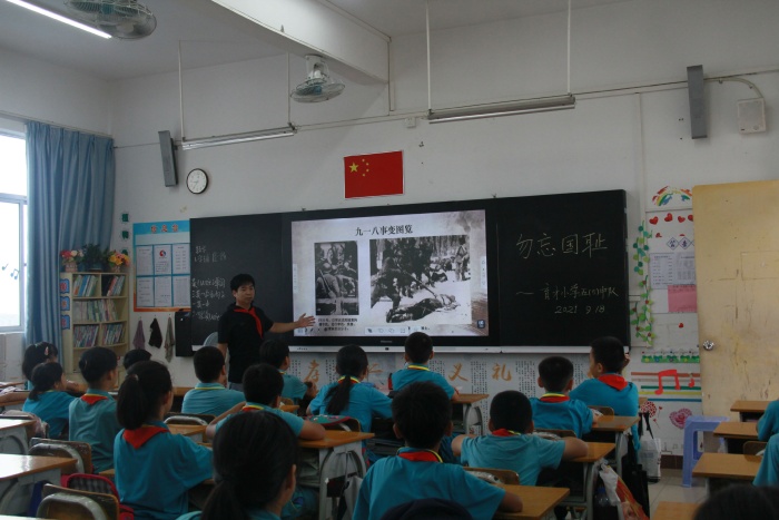 升旗儀式后,各中隊紛紛開展了愛國主義教育活動,各中隊輔導(dǎo)員帶領(lǐng)孩子們重溫了“九一八”歷史事件,回顧了革命先烈艱苦卓絕的抗戰(zhàn)歷史,告誡少年兒童們勿忘國恥,牢記歷史。