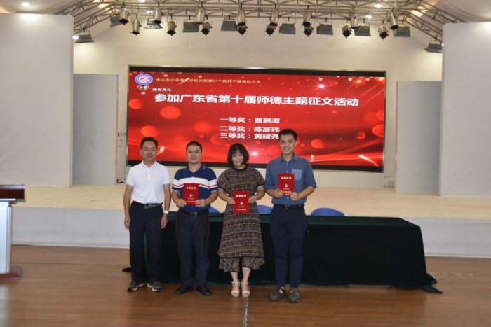 9月10日,中山市沙溪理工學(xué)校全體教職工歡聚一堂,在學(xué)校綜藝廳共同慶祝第37個教師節(jié)暨表彰大會。會上,學(xué)校黨總支書記、校長馮子川帶領(lǐng)全體教師學(xué)習(xí)領(lǐng)會《習(xí)近平給全國高校黃大年式教師團隊代表的回信》《中山市教育和體育局致全市教師的一封信——老師,您辛苦了》等文件精神,表彰優(yōu)秀教師,并帶領(lǐng)全體教師宣誓。大會由學(xué)校副校長盧永輝主持。