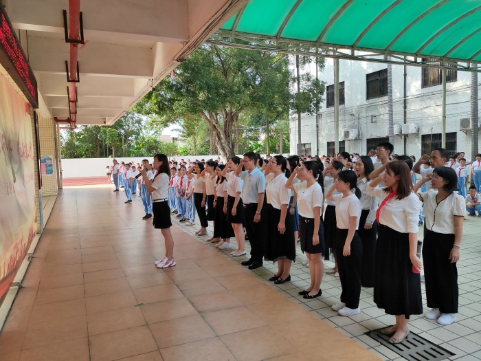上午八點,全體師生精神抖擻的匯聚于學(xué)校操場,鮮艷的五星紅旗在升旗儀仗隊的護衛(wèi)下,伴著雄壯的義勇軍進行曲,與太陽一同冉冉升起。在莊嚴的升國旗儀式后,校長莫文杰進行了熱情洋溢的致詞,向辛勤耕耘的老師們致以節(jié)日的祝賀和衷心的感謝,勉勵教師們努力成為與時俱進的新時代教師,要有熱愛教育的定力和淡泊名利的堅守,做有理想信念、有道德情操、有扎實學(xué)識、有仁愛之心的“四有”好老師。