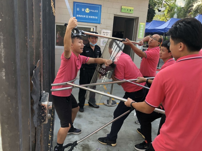 為有效預(yù)防、及時控制和消除校園重大突發(fā)事件的危害,保障師生身體健康與生命安全,維護(hù)學(xué)校正常的教育教學(xué)秩序,全面提高應(yīng)對恐怖和暴力能力。中山市民眾新徽學(xué)校于2021年9月10日上午組織應(yīng)急防暴組人員開展安全防暴反恐模擬演練活動。