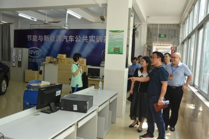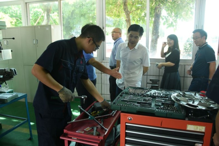 考察團(tuán)首先走進(jìn)學(xué)校汽車技術(shù)部的實(shí)訓(xùn)場(chǎng)室,觀摩師生上課實(shí)操,與師生交流有關(guān)于專業(yè)教學(xué)的設(shè)施設(shè)備、課程內(nèi)容、考核標(biāo)準(zhǔn)等具體內(nèi)容;參觀學(xué)校與企業(yè)合作的汽車維修中心,詢問(wèn)校企合作的運(yùn)行機(jī)制、運(yùn)作流程。考察團(tuán)還走進(jìn)節(jié)能與興能源汽車公共實(shí)訓(xùn)基地,了解基地內(nèi)環(huán)境、人員和設(shè)備等情況,感受正在建設(shè)廣東省雙高專業(yè)的新能源汽車維修專業(yè)群的新進(jìn)展。