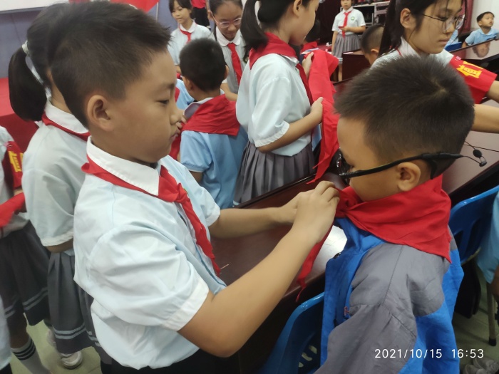 2021年10月15日下午,在下南小學(xué)的報(bào)告廳舉行了隆重的一年級(jí)入隊(duì)儀式。學(xué)生們?cè)诶蠋煹膸ьI(lǐng)下,早早地來到了會(huì)場,等他們?nèi)松械谝淮我饬x重大的、激動(dòng)人心的時(shí)刻——加入光榮的少先隊(duì)組織。儀式中,歌聲嘹亮,隊(duì)旗、紅領(lǐng)巾格外鮮艷,個(gè)個(gè)小臉上洋溢著開心燦爛的笑容。伴隨著嘹亮的《少年先鋒隊(duì)隊(duì)歌》,由老隊(duì)員為新隊(duì)員佩戴紅領(lǐng)巾,互相莊重地敬了隊(duì)禮。