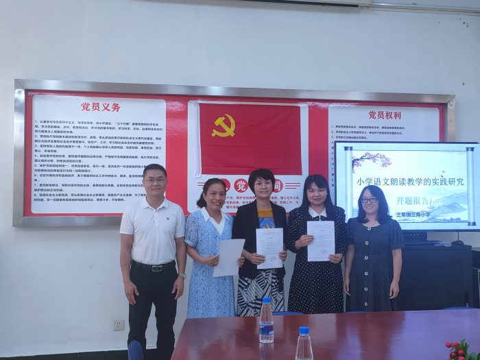 為提升教師專(zhuān)業(yè)水平,幫助教師有效解決課堂問(wèn)題,提高教師的整體素養(yǎng),2021年10月12日上午,三角鎮(zhèn)三角小學(xué)召開(kāi)語(yǔ)文科“小學(xué)生古詩(shī)詞鑒賞能力的培養(yǎng)研究”、“小學(xué)語(yǔ)文朗讀教學(xué)的實(shí)踐研究”和英語(yǔ)科“故事教學(xué)法在小學(xué)英語(yǔ)閱讀教學(xué)中的應(yīng)用”三個(gè)鎮(zhèn)級(jí)課題開(kāi)題報(bào)告會(huì)。三角鎮(zhèn)教育和體育事務(wù)中心梁文副主任、英語(yǔ)教研員吳萍老師、三角小學(xué)領(lǐng)導(dǎo)及課題組成員出席了本次報(bào)告會(huì)。