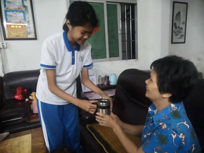 放學(xué)后,隊(duì)員們積極響應(yīng)學(xué)校號召,用自己的行動(dòng)踐行了諾言:給家人倒茶、盛飯、按摩、洗腳等,一句句簡單的祝福,一個(gè)個(gè)暖心的微行動(dòng),給家人送去不少溫暖。
