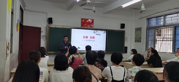 專家引領(lǐng),高屋建瓴。在此次幫扶活動中,五桂山學(xué)校特別邀請了中山市名師工作室主持人、開發(fā)區(qū)中心小學(xué)萬小兵副校長為大溝小學(xué)送去教師專業(yè)成長的主題講座。萬校長以竇桂梅等三位名師的故事為序,引出“扎根”這一主題,希望大溝小學(xué)青年教師能扎根目前條件較為艱難得工作環(huán)境,夯實自己的根基。繼而分享自己從教以來的成長故事,鼓勵他們主動承擔(dān)各類工作,讓任務(wù)成為自己成長的階梯,拾級而上,厚積薄發(fā)。最后通過“信念、策略、堅持”這三個關(guān)鍵詞引領(lǐng)青年教師們?nèi)绾卧诮處煂I(yè)成長的道路上走得更長更遠。萬校長在講座中提到,教師的專業(yè)成長,更多是一種信念,一種堅持,只有堅定的信念、持之以恒的態(tài)度才能讓自己成長得更快。