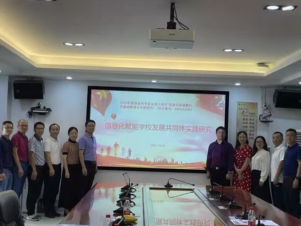 首先,大家聆聽(tīng)了嶺南師范學(xué)院徐潔博士和松山湖實(shí)驗(yàn)中學(xué)萬(wàn)飛校長(zhǎng)關(guān)于2018年度國(guó)家科學(xué)基金重大項(xiàng)目“信息化促進(jìn)新時(shí)代基礎(chǔ)教育公平的研究”課題——信息化賦能學(xué)校共同體發(fā)展實(shí)踐研究相關(guān)成果的介紹。