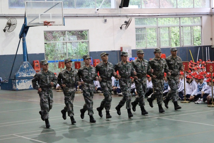 下午,高一學(xué)子們以連為單位,開始了軍訓(xùn)。同學(xué)們認(rèn)真聽教官講解,絲毫不敢懈怠,第一天的軍訓(xùn)內(nèi)容包括軍姿、跑步行進(jìn)與立定等,接下來幾天,還有跑操隊(duì)形訓(xùn)練、整理內(nèi)務(wù)、軍歌、軍體拳等內(nèi)容。藍(lán)天白云天公作美!學(xué)校建設(shè)如火如荼,青年學(xué)子朝氣蓬勃!第一天的軍旅生活結(jié)束了,每一位同學(xué)也許步伐還未矯健,但是已經(jīng)懂得昂首挺胸。他們用所有的興奮和熱情對待軍訓(xùn)中的每一項(xiàng)活動。