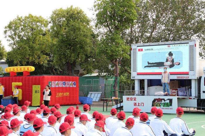 本次的應(yīng)急救護(hù)培訓(xùn)內(nèi)容分為心肺復(fù)蘇、常見急癥處理等應(yīng)急救護(hù)知識講座、大篷車實(shí)踐體驗(yàn)環(huán)節(jié)、“強(qiáng)技能”主題交流。在體育館的同學(xué)們、班主任們、軍訓(xùn)教官們認(rèn)真觀看著市紅十字會黎子丹老師和梁潤泉助教的精彩授課,時而傳來陣陣掌聲。在操場進(jìn)行的是大篷車體驗(yàn)項(xiàng)目,在學(xué)校黨委委員李燦澤同志的介紹下,市紅會何玉珍、高小紅等老師開始進(jìn)行了心肺復(fù)蘇、止血包扎等講解,隨后師生們進(jìn)行火災(zāi)逃生模擬、醉駕模擬、觸電模擬、滅火器使用、繃帶包扎等體驗(yàn)。最后,通過主題交流、問卷調(diào)查等形式發(fā)現(xiàn),在場的師生對此次培訓(xùn)表示十分滿意,市紅十字會老師們對中山二中的學(xué)生積極配合與努力求學(xué)、對學(xué)校紅十字會的志愿者們的默默奉獻(xiàn)等方面贊賞有嘉。