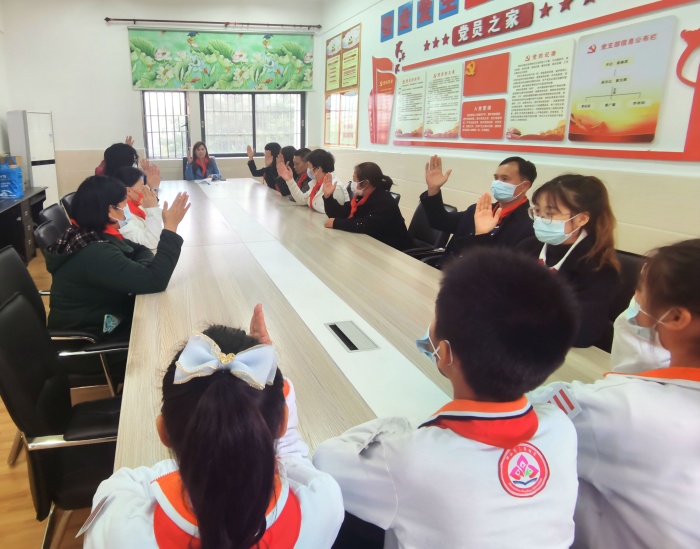 接著,少工委副主任黎文輝副校長對紅領巾提案進行回復,針對少先隊員們提出的關于安全、心理健康等問題作出了回復。并鼓勵少先隊員們能繼續(xù)發(fā)揚主人翁精神,為少先隊的建設與發(fā)展繼續(xù)獻言獻策,爭做優(yōu)秀少先隊員。