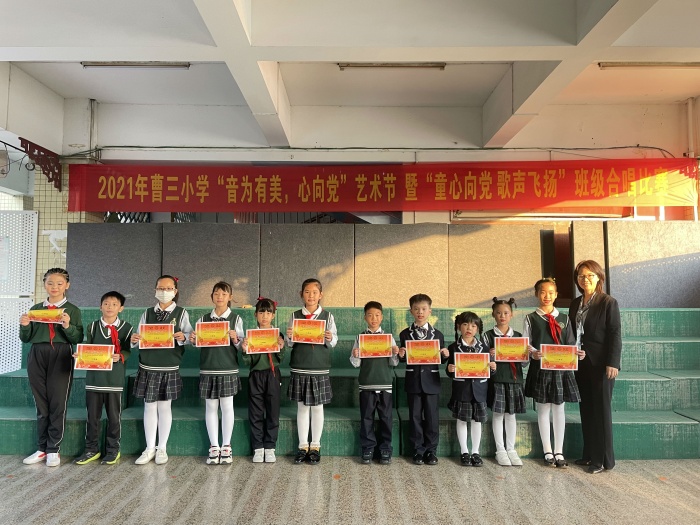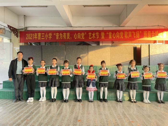 為豐富學生的校園生活,彰顯學生積極向上的精神風貌,12月17日下午,古鎮(zhèn)鎮(zhèn)曹三小學舉行以“童心向黨 歌聲飛揚”為主題的班級合唱比賽。全校23個班,一千余名同學參加了本次合唱比賽。
