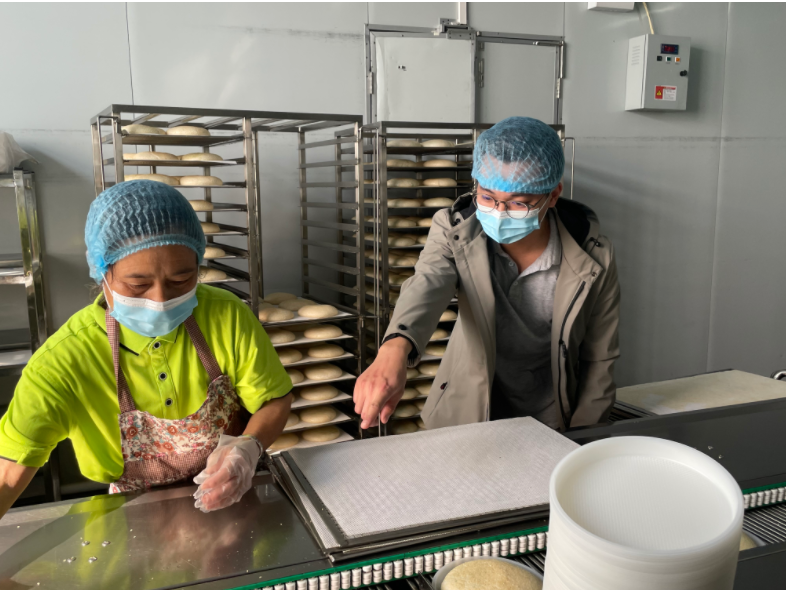 一成不變的工作和生活方式,難以讓他從中收獲成就感。為實現(xiàn)自我發(fā)展, 2020年5月,趙大慧通過申請創(chuàng)業(yè)貸款及家人幫助,籌措資金一百萬元創(chuàng)設食品公司。在他的用心經(jīng)營下,公司實現(xiàn)了年銷售額過百萬元的“小目標”。從速凍的紅糖卷到蔥燒大餅半成品,趙大慧公司生產(chǎn)的產(chǎn)品成為不少茶樓的供應商品。