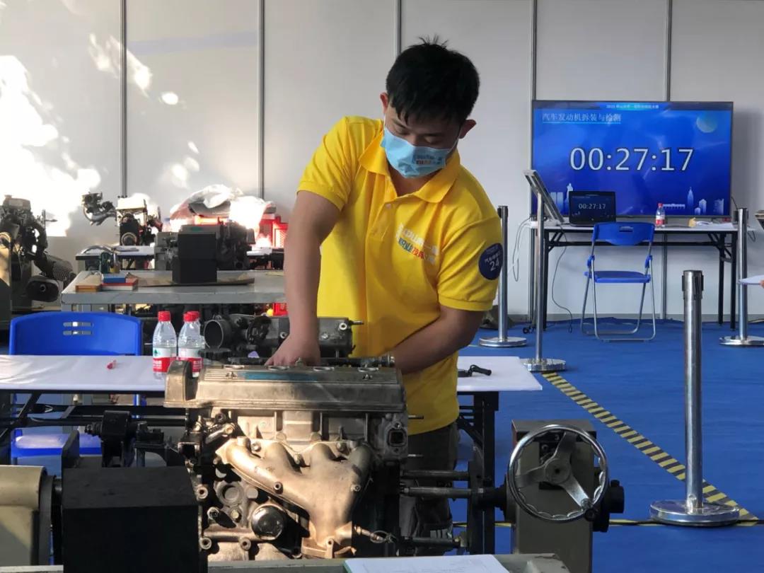 汽車(chē)維修比賽項(xiàng)目中,選手與時(shí)間賽跑,全神貫注投入比賽。