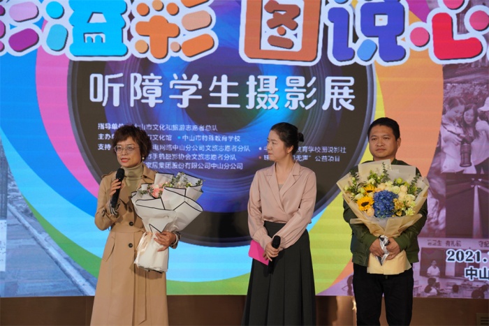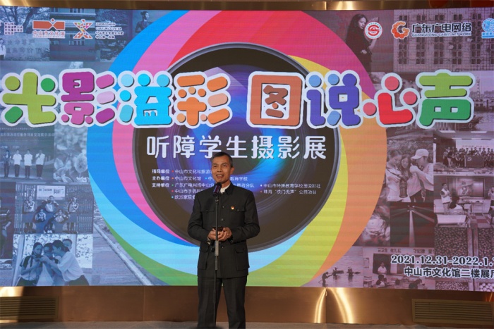 開幕式愛心融融、溫情涌動。市政協(xié)工會主席何星朗,市總工會二級調(diào)研員馮勇,市文化廣電旅游局四級調(diào)研員張文,廣東省廣播電視網(wǎng)絡(luò)股份有限公司中山分公司市場營銷部品牌傳播室負(fù)責(zé)人徐國超,市委宣傳部文化發(fā)展科科長王洪,市文化館館長方文,市特校黨總支書記、校長湯劍文,市文化館副館長王梓仲,市美術(shù)教研員沈文,市東區(qū)書法家協(xié)會會長吳步里,市攝影家協(xié)會副主席王國辰,歐派家居集團股份有限公司中山分公司總經(jīng)理譚錦恩,珠?!翱扉T無聲”公益項目創(chuàng)始人朱習(xí),市文化館專職攝影師賀億強,以及市特校圖說影社的師生們均來到活動現(xiàn)場,真情相約本次心靈之旅。
