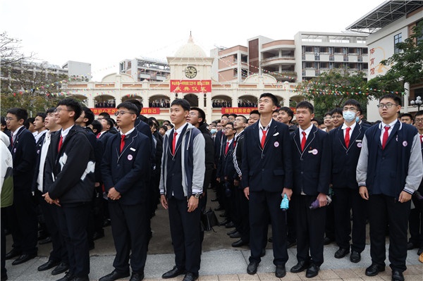 27日上午,學(xué)校鐘樓前的百年廣場醒獅舞動,鑼鼓喧天。來自初中部醒獅隊的兩只活潑可愛的醒獅,隨著極具節(jié)奏感的鼓點,靈活地舞動著,其帶來的熱鬧氛圍驅(qū)散深冬的嚴(yán)寒。當(dāng)天10:40“百年風(fēng)華育英才 強(qiáng)國有我啟新程”創(chuàng)校329年?建校113周年校慶慶典拉開序幕。應(yīng)疫情防控要求,各地校友在“云端”與校內(nèi)8000師生相聚,通過現(xiàn)場直播的方式為母校送祝福。