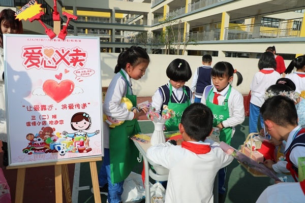 愛(ài)心就像冬日里的陽(yáng)光,三四年級(jí)的同學(xué)們開(kāi)展了愛(ài)心義賣(mài)活動(dòng),義賣(mài)攤位上擺滿了各式精美小巧的手工藝品、文具、食物、生活用品等,同學(xué)們向路過(guò)的“顧客們”推銷(xiāo)自己的愛(ài)心物品,可謂“八仙過(guò)海各顯神通”。行走在各式“商鋪”間,耳畔的叫賣(mài)聲,眼前的景象熱鬧非凡,在一買(mǎi)一賣(mài)之間傳遞愛(ài)心,讓大家感受校園的溫暖。