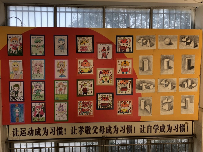 此次書(shū)畫(huà)展以“繪畫(huà)展風(fēng)采,墨香慶元旦”為主題。在全校師生的精心準(zhǔn)備下,共收到繪畫(huà)、書(shū)法、手工等各類(lèi)作品近100件,各個(gè)興趣小組的學(xué)生以飽滿(mǎn)的熱情,創(chuàng)作出了自己最得意的作品。本次書(shū)畫(huà)展主要分為三大板塊:繪畫(huà)作品、書(shū)法作品以及手工立體構(gòu)成作品和輕黏土作品。展出的作品形式多樣,可謂亮點(diǎn)紛呈。