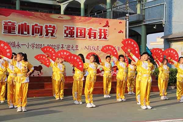 為了教育引導(dǎo)少年兒童聽(tīng)黨話、跟黨走,傳承紅色基因;為豐富校園文化生活,充分展示學(xué)校藝術(shù)教育成果,提供學(xué)生表演的舞臺(tái),坦洲鎮(zhèn)永一小學(xué)于2021年12月31日下午,舉行了“童心向黨,強(qiáng)國(guó)有我”新隊(duì)員入隊(duì)儀式暨迎元旦文藝匯演。