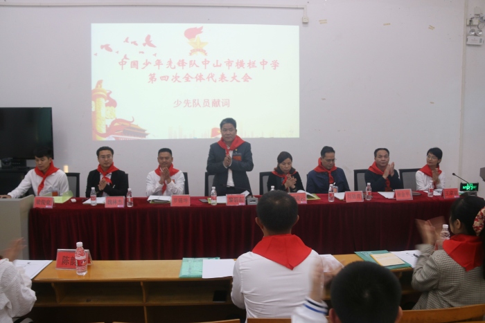 12月24日下午,中國少年先鋒隊中山市橫欄中學第四次代表大會在橫欄中學階梯式召開。橫欄中學黨總支部書記、校長、校少工委主任黎碧東同志等領導嘉賓出席了本次會議。