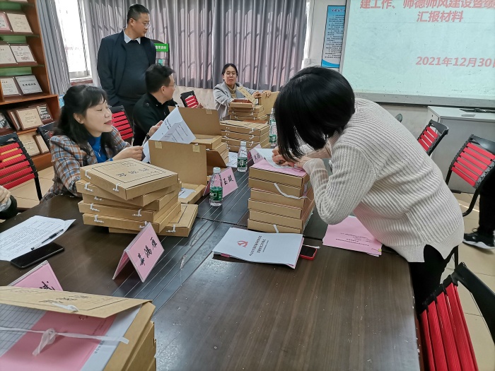 然后聽匯報(bào)。由德育處周波主任代表學(xué)校作工作匯報(bào)。周波主任從黨建工作、素質(zhì)教育、師德建設(shè)、德育滲透、安全管理五大方面,用圖文并茂的PPT,向檢查組簡(jiǎn)明扼要匯報(bào)了學(xué)校2020年度的工作情況,充分展示了學(xué)校的工作亮點(diǎn)和特色。這讓檢查組成員對(duì)學(xué)校工作情況有更直觀的了解。