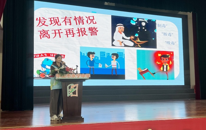 永寧社區(qū)禁毒專干方慧瀅針對青少年辨別毒品能力弱、對毒品的危害及禁毒知識認(rèn)識不足等問題作《無毒青春,有你有我》主題宣講,通過認(rèn)識粵虎、毒品你知道多少、毒品有多可怕、我該如何做等四個部分,結(jié)合初一學(xué)生年齡認(rèn)知實際和廣東禁毒案例,從毒品的辨別、毒品的危害、如何防御等方面進行講解,以此來提高學(xué)生們對毒品的自我防護意識和辨識毒品的能力。