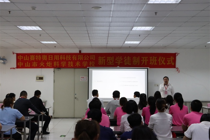2023年3月15日,中山市火炬科學(xué)技術(shù)學(xué)校與中山賽特奧日用科技有限公司新型學(xué)徒制開班儀式在賽特奧公司舉行。火炬科技學(xué)校校長(zhǎng)陳建國(guó)、副校長(zhǎng)王劍勤、校企合作處副主任鄧明、中山市人力資源和社會(huì)保障局小欖分局朱嘉敏副局長(zhǎng)、賽特奧公司董事顏發(fā)廣、高級(jí)經(jīng)理鄒秋娟,以及相關(guān)老師、公司員工參加開班儀式。開班儀式由賽特奧公司人力資源部林創(chuàng)英主持。