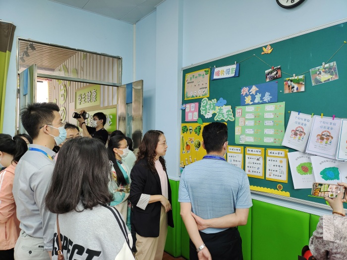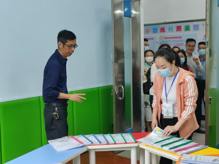 為了解學(xué)校融合教育的整體概況,以及資源教室的具體運(yùn)作,交流團(tuán)教師一行在林小舟校長和德育處行政陪同帶領(lǐng)下集體參觀校園,感受軒小潤物無聲,浸潤心田的水云文化。走訪心育陣地了解學(xué)校融合工作從點(diǎn)到面的全面鋪展。隨后,交流團(tuán)教師們一行在新多媒體室,查看軒小發(fā)展融合教育多年來不斷探索的資料,聽取學(xué)校融合教育的工作匯報(bào)。