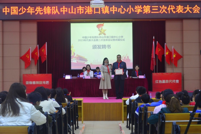 大隊(duì)委梁泉作港口鎮(zhèn)中心小學(xué)第三次代表大會(huì)籌備工作報(bào)告。少先隊(duì)大隊(duì)長(zhǎng)五(1)中隊(duì)林浩燁向大會(huì)作少先隊(duì)工作報(bào)告。黃珈翎隊(duì)員宣讀《中國(guó)少年先鋒隊(duì)港口鎮(zhèn)中心小學(xué)第六屆大隊(duì)委候選人名單》和宣讀《中國(guó)少年先鋒隊(duì)港口鎮(zhèn)中心小學(xué)第三屆少工委委員候選人名單》并宣布港口鎮(zhèn)中心小學(xué)第六屆大隊(duì)委結(jié)果和宣布少工委三屆全委會(huì)選舉結(jié)果。隨后,大會(huì)頒發(fā)中心小學(xué)少工委正主任聘書、中心小學(xué)正、副總輔導(dǎo)員聘書、頒發(fā)中心小學(xué)少工委委員聘書。