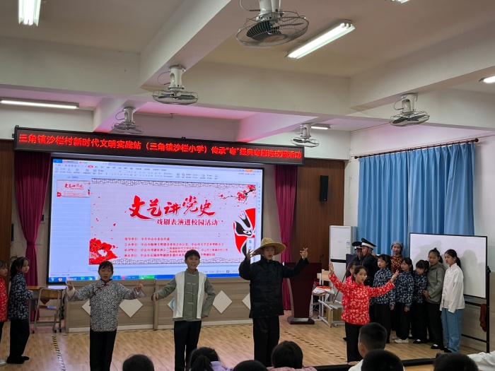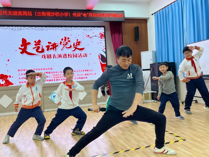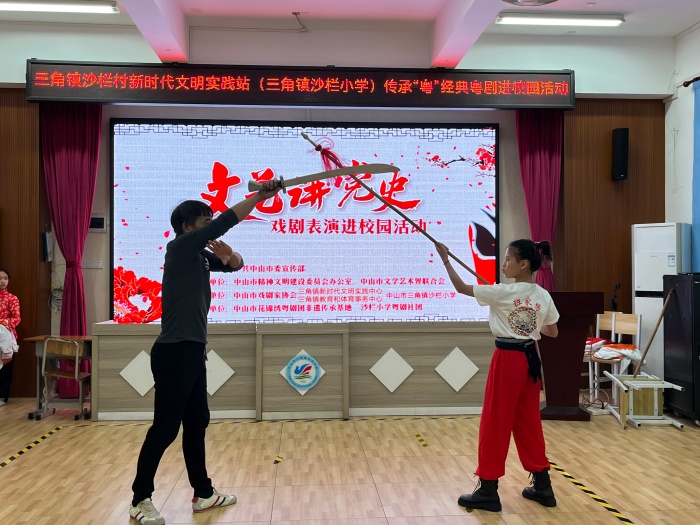 為了進一步展現(xiàn)中華優(yōu)秀傳統(tǒng)文化,豐富校園生活,培養(yǎng)孩子們的戲曲素養(yǎng),提高學(xué)校師生對粵劇文化的了解,3月28日下午,中山市花錦繡粵劇團非遺傳承基地的老師們,為三角鎮(zhèn)沙欄小學(xué)師生們帶來了一場精彩紛呈的視聽盛宴!讓學(xué)生看粵劇、聽粵劇、學(xué)粵劇、親身體驗粵劇。