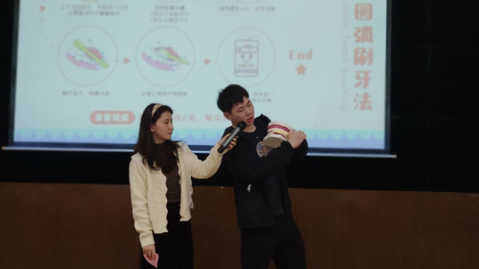 活動(dòng)伊始,新聯(lián)小學(xué)校長吳肇葵感謝板芙鎮(zhèn)相關(guān)部門為學(xué)校師生帶來知識(shí)講座。他結(jié)合自身成長經(jīng)歷告訴學(xué)生口腔保護(hù)以及毒品預(yù)防的重要性,提醒學(xué)生在講座中要認(rèn)真傾聽。板芙醫(yī)院口腔科醫(yī)生羅睿用通俗易懂的語言為同學(xué)們科普了豐富有趣的口腔健康知識(shí)。他從口腔存在的普遍問題,窩溝齲的發(fā)展過程及口腔保健等多方面詳細(xì)闡述了口腔保健的重要性,并強(qiáng)調(diào)生活中要養(yǎng)成早晚刷牙、飯后漱口等良好的好習(xí)慣。然后,他還通過圖文和實(shí)物模型結(jié)合的形式為孩子演示正確的刷牙方式,同學(xué)們聽得津津有味,跟著羅睿醫(yī)生的步驟逐步學(xué)習(xí)正確、科學(xué)的刷牙方式。