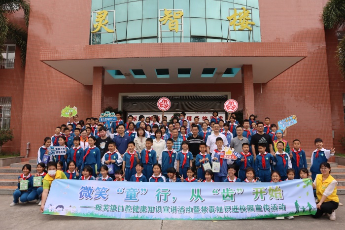 為更好地預(yù)防學(xué)生齲齒的發(fā)生,進(jìn)一步強(qiáng)化中小學(xué)生對毒品危害的認(rèn)識(shí)和重視,增強(qiáng)學(xué)生識(shí)毒、防毒、拒毒的意識(shí)和能力,促進(jìn)學(xué)生健康成長,3月20日,板芙鎮(zhèn)黨建辦、鎮(zhèn)婦聯(lián)、鎮(zhèn)禁毒辦、鎮(zhèn)商會(huì)黨支部、板芙醫(yī)院黨支部、中山市禁毒分會(huì)板芙鎮(zhèn)辦事處攜手走進(jìn)新聯(lián)小學(xué),為五年級(jí)師生開展了口腔健康知識(shí)宣講暨禁毒知識(shí)講座。參與本次活動(dòng)的嘉賓有:板芙鎮(zhèn)婦聯(lián)主席周倩盈、鎮(zhèn)教育與體育事務(wù)中心主任謝柳青、鎮(zhèn)黨群服務(wù)中心副主任黎燕愛、鎮(zhèn)商會(huì)黨支部書記任煉金、鎮(zhèn)工商聯(lián)(商會(huì))輪值會(huì)長翟志明、板芙醫(yī)院黨委組織委員劉東勝和板芙鎮(zhèn)禁毒社工們。