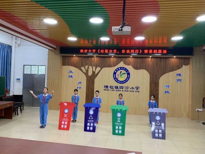垃圾分類工作是創(chuàng)建文明城市的重要一環(huán)。為努力推進四沙小學垃圾分類工作,樹立綠色低碳、環(huán)保的生活理念,美化居住環(huán)境,減少污染,變廢為寶,9月30日上午,四沙小學利用大課間時間,全體師生一同集中田徑場觀看《垃圾分類,你我同行》情景劇。