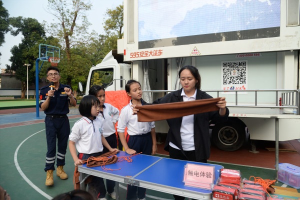 活動開始,張溪鄭二小學李振華副校長強調(diào)了宣傳防空防災知識,提高師生防空防災意識的重要性。接著中山市住房和城鄉(xiāng)建設局(人防科)的宣講員給大家進行了系統(tǒng)詳細的講解。他先向大家普及了關于人防的知識,接著給師生們重點講解了遭遇火災和毒氣污染該采取什么措施防止或減少受到的傷害。最后他還邀請學生進行了觸電體驗,模擬火災和毒氣泄露現(xiàn)場,讓學生實踐操作所學的防災知識。學生在體驗式教學中感受到了災害的可怕,也牢牢地掌握了防災減災知識。整個活動過程充滿趣味性,師生們都受益匪淺。