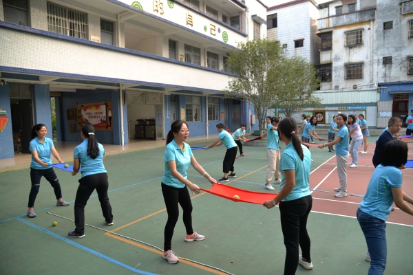 下午4:20,張溪鄭二小學(xué)全體教師在學(xué)校小操場集合,教練先帶領(lǐng)大家做了熱身運(yùn)動,接著按年級進(jìn)行了分組,每個(gè)小組都創(chuàng)建了自己響亮的口號。一切準(zhǔn)備就緒,拓展訓(xùn)練項(xiàng)目正式開始了。第一個(gè)項(xiàng)目是合力水彈,每小組的組員兩兩合作拿著一塊毛巾,需將一個(gè)網(wǎng)球用拋接的方式傳遞。剛開始聽教練講規(guī)則的時(shí)候大家都覺得難度太大了,根本是不可能完成的任務(wù)。但是哪個(gè)小組都沒有退縮,大家通過一次一次的練習(xí),一次次的磨合,最終找到方法。第二個(gè)項(xiàng)目是雷霆戰(zhàn)鼓,每組組員合力拉著一面鼓,用鼓來顛網(wǎng)球,在練習(xí)時(shí)間里,組員們都獻(xiàn)計(jì)獻(xiàn)策看看怎么能確保球不掉落,操作過程中又不斷改進(jìn)方法,互相鼓勵(lì)。最終,四年級組以顛球43下的成績贏得了全場的掌聲,連教練都贊嘆不已?;顒咏Y(jié)束了,老師們都還意猶未盡,沉浸在運(yùn)動的快樂中。