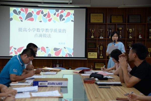 最后,數(shù)學(xué)科組骨干教師劉燕青老師從自己敬畏課堂教導(dǎo)學(xué)生也要敬畏課堂;著重培養(yǎng)學(xué)生的數(shù)學(xué)思維,細(xì)心的學(xué)習(xí)習(xí)慣和提高學(xué)生做題速度;生生結(jié)對,幫扶學(xué)困生三個(gè)方面分享了自己提高小學(xué)數(shù)學(xué)教學(xué)質(zhì)量的點(diǎn)滴做法。全體老師耐心聆聽,獲益匪淺。