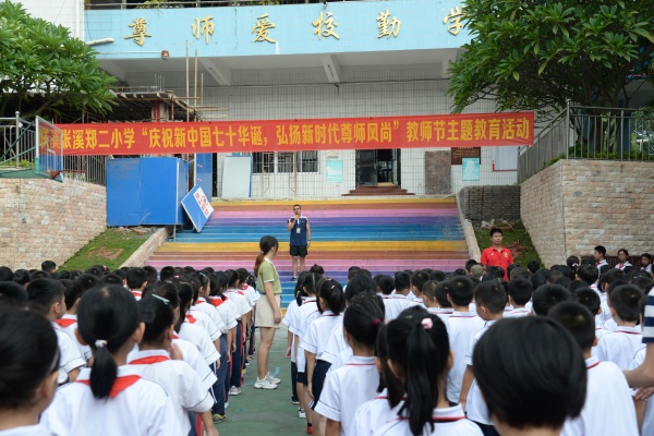 金色的九月丹桂飄香,碩果累累。在這個(gè)滿載收獲和喜悅的初秋時(shí)節(jié),第35個(gè)教師節(jié)悄然而至。為倡導(dǎo)教師為人師表、爭做“四有好教師”,培養(yǎng)學(xué)生尊師重道的美德。9月9日上午,石岐張溪鄭二小學(xué)組織開展了“慶祝新中國七十華誕,弘揚(yáng)新時(shí)代尊師風(fēng)尚”的教師節(jié)主題教育活動(dòng)。