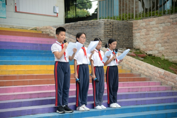 在莊嚴(yán)的升旗儀式后,六(4)班以“教師禮贊”為主題的詩歌朗誦拉開了活動(dòng)的序幕。六(3)班的學(xué)生也用優(yōu)美、整齊的手語舞《感恩的心》表達(dá)了對(duì)老師的深深敬意和濃濃的愛。接著,兩個(gè)班的學(xué)生代表向?qū)W校的全體老師送上了鮮花和節(jié)日的祝福,收到了這份驚喜的老師臉上都洋溢著幸福的笑容。隨后,李振華副校長呼吁全體師生共同迎接第35個(gè)教師節(jié),讓濃濃的尊師情溢滿校園。最后,吳海棠主任對(duì)暑假參加2019年廣東省門球錦標(biāo)賽的獲獎(jiǎng)學(xué)生進(jìn)行表彰及頒獎(jiǎng),充分肯定了選手積極進(jìn)取和拼搏奮斗的精神,也寄望新隊(duì)員要刻苦訓(xùn)練再創(chuàng)輝煌。