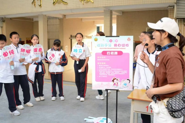 初一級部分班級的300多位學(xué)生和部分家長參與了游園活動?;顒娱_始,初一級級組長劉瑞翔老師組織大家學(xué)習(xí)游園活動中的紀律要求。接著,本次活動策劃者英格老師跟大家解讀本次活動的主題——性別平等、各自綻放。英格老師指出男女性別平等作為國家一項基本國策,內(nèi)涵非常豐富,舉行本次活動目的在于向參與者傳遞“性別平等,不受社會文化給予的限制,懂得了解自己,成為遵從內(nèi)心的、充滿活力的、生命力綻放的自己”的信息。