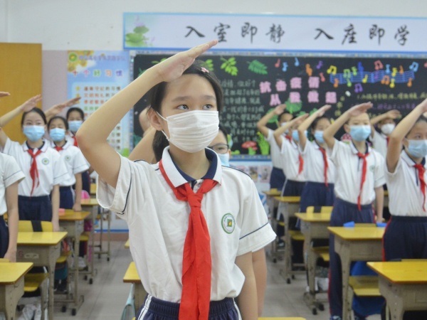 五星紅旗冉冉升起,師生們高唱國歌,心情澎湃。升旗儀式上,孫華校長以《努力做更健康更好的自己》為主題作旗下講話。她寄語同學們返校復學后要繼續(xù)做好防疫工作,重視身心健康,勉勵同學們繼續(xù)做“專注、堅毅、自律、自強”的四好孩子,用勤奮的汗水為生命增添色彩!