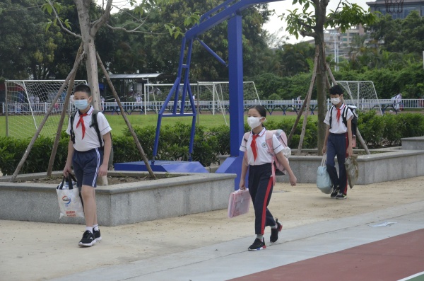 迎著早晨的第一縷陽光,學校全體行政、值日教師、年級網(wǎng)格化管理員在校門口親切迎接返校學生。
