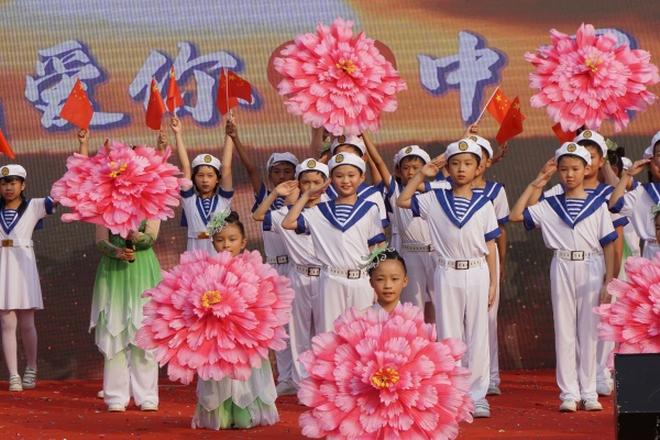 各年級(jí)分別以“童心共筑中國夢(mèng)”、“我為祖國升國旗”、“爭(zhēng)當(dāng)新時(shí)代先鋒”為主題作精彩展示,現(xiàn)場(chǎng)涌動(dòng)著濃濃的愛國情和堅(jiān)定的報(bào)國志!