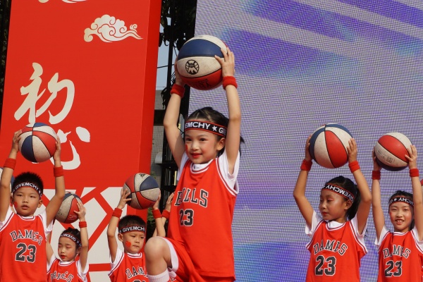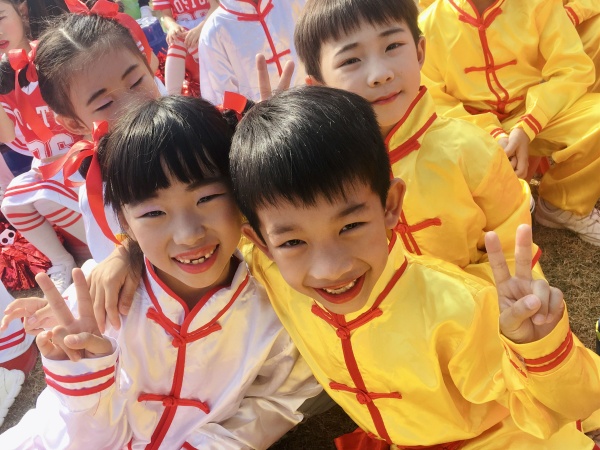“新時(shí)代向我們招手,新時(shí)代向我們呼喚!不負(fù)偉大新時(shí)代,我們童心共筑中國夢(mèng)!”一二年級(jí)以“童心共筑中國夢(mèng) 活潑快樂我最棒”為主題,輪番展示充滿活力的武術(shù)、啦啦操、軍體拳、戲劇廣播體操等精彩節(jié)目。孩子們穿上少數(shù)民族服飾表演舞蹈《愛我中華》,表達(dá)了56個(gè)民族是一家的民族自豪感?!罢救缢?,坐如鐘,行如風(fēng),臥如弓……”低年級(jí)孩子們帶來的武術(shù)表演虎虎生威!多個(gè)班級(jí)的“運(yùn)動(dòng)健兒”們?yōu)榇蠹規(guī)韯?dòng)感十足的啦啦操。他們?cè)谡故局腥谌肓似古仪颉⒂鹈?、籃球、足球等體育運(yùn)動(dòng)元素,靈動(dòng)的身姿如同精靈般翩翩起舞,匯成一片片歡樂的海洋!活力四射的表演點(diǎn)燃了師生們的運(yùn)動(dòng)激情,寄托了同學(xué)們建設(shè)體育強(qiáng)國的信心與決心!