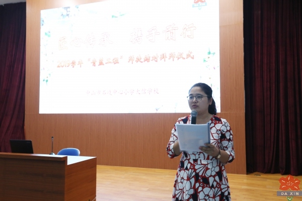 緊接著,徒弟老師代表蘇萌老師帶領(lǐng)全體徒弟老師宣讀了誓言,其中最后一句齊讀:我們將在大信的沃土里成長,我們將用實(shí)際行動實(shí)現(xiàn)我們?nèi)松鷥r值和理想!讀出了徒弟老師們的堅(jiān)定的信念和目標(biāo)。